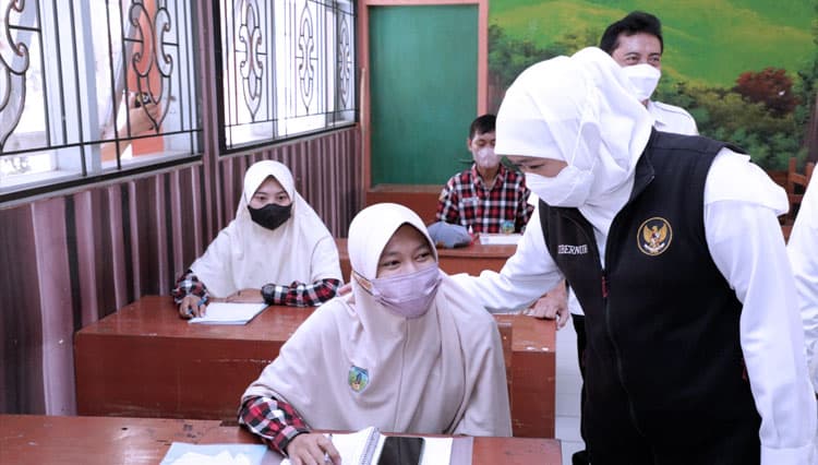 TIMES Flores/Gubernur Khofifah saat meninjau PTM terbatas. (FOTO: Dok.Humas Pemprov Jatim)