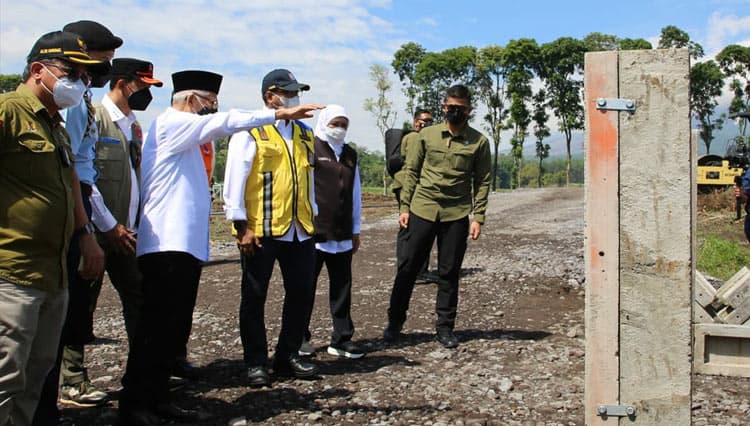 TIMES Flores/Sekjen PUPR RI Mohammad Zainal Fatah dampingi Wapres RI KH Ma'ruf Amin meninjau lokasi pembangunan Hunian Sementara (Huntara) bagi korban terdampak erupsi Gunung Semeru di Desa Sumbermujur, Kecamatan Candipuro, Kabupaten Lumajang.
